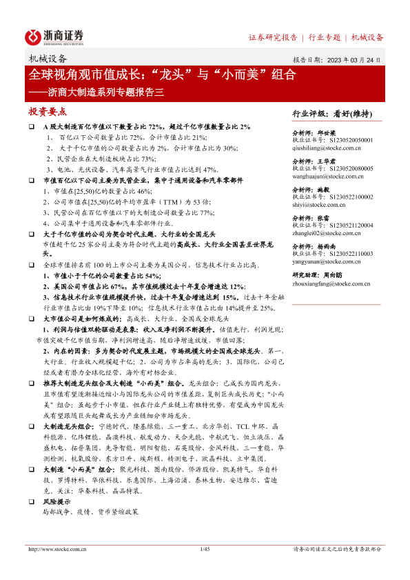 【浙商证券】【20230324】全球视角观市值成长:“龙头”与“小而美”组合-45页