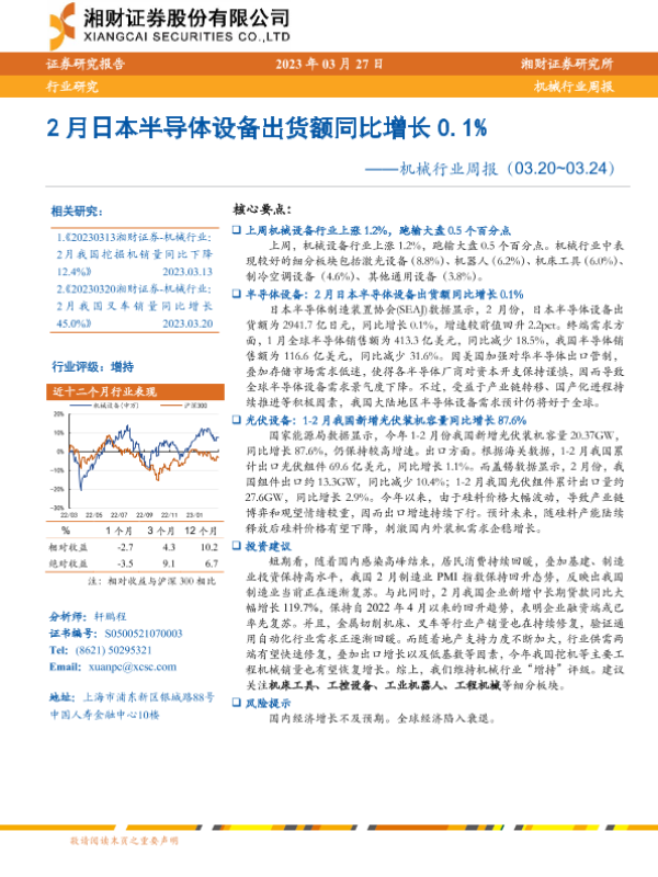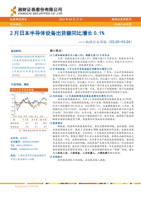 【湘财证券】【20230327】2月日本半导体设备出货额同比增长0.1%-14页
