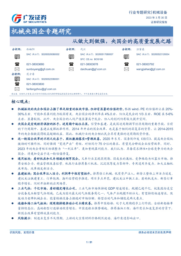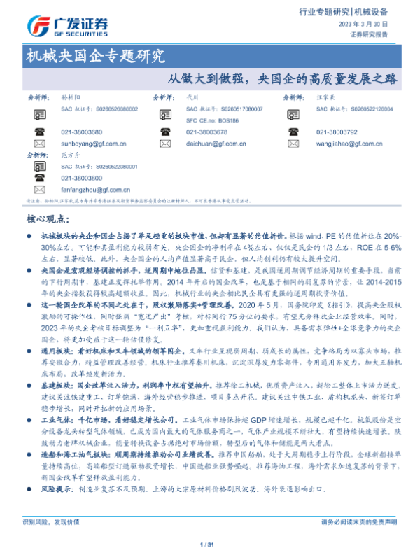 【广发证券】【20230330】20230330-广发证券-机械央国企专题研究:从做大到做强,央国企的高质量发展之路-31页