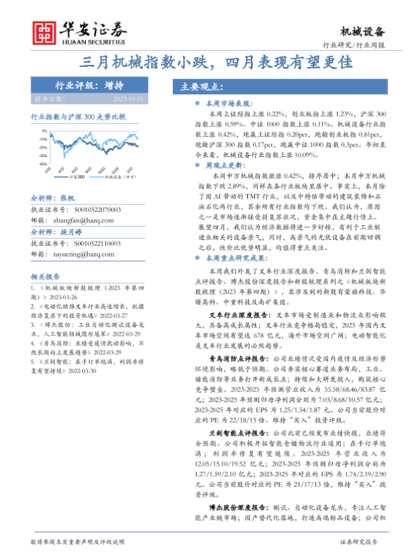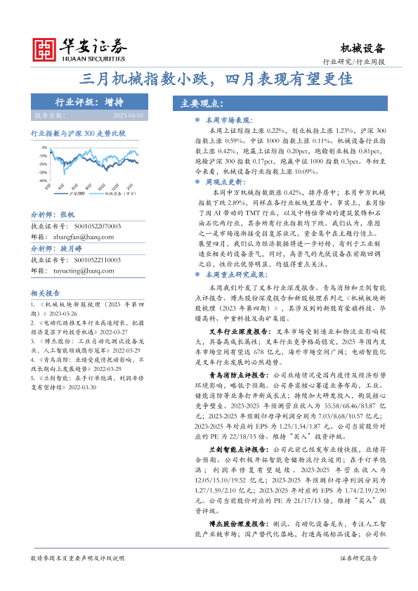 【华安证券】【20230401】20230401-华安证券-机械设备行业周报:三月机械指数小跌,四月表现有望更佳-14页