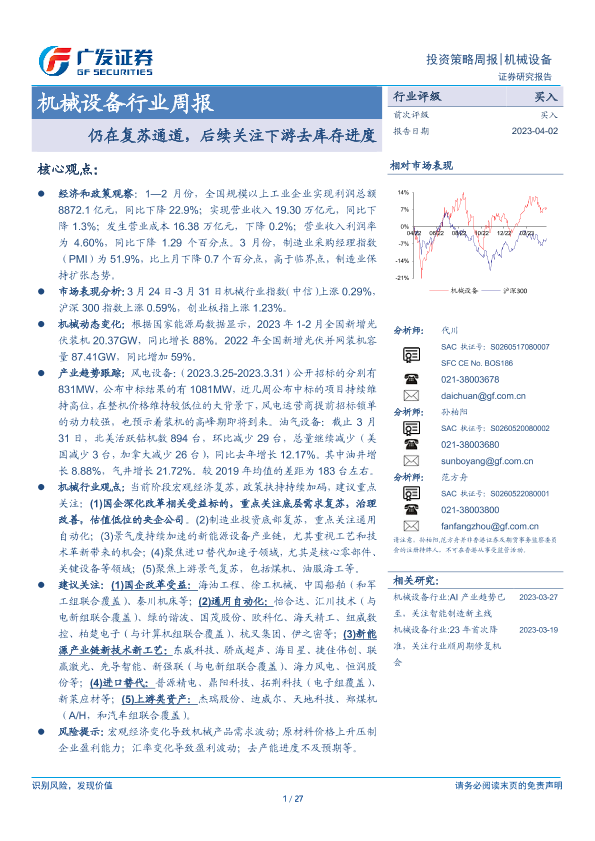 【广发证券】【20230402】20230402-广发证券-机械设备行业周报:仍在复苏通道,后续关注下游去库存进度-27页