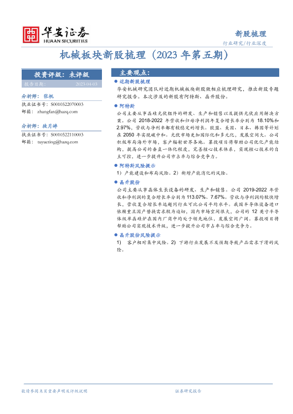 【华安证券】【20230403】机械板块新股梳理(2023年第五期)-12页