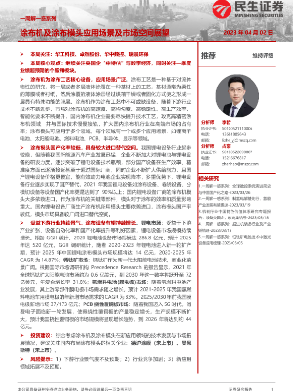 【民生证券】【20230402】机械行业一周解一惑系列:涂布机及涂布模头应用场景及市场空间展望-20页