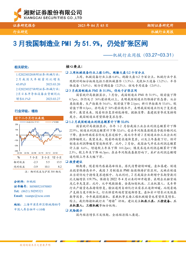 【湘财证券】【20230403】20230403-湘财证券-机械行业周报:3月我国制造业PMI为51.9%,仍处扩张区间-14页