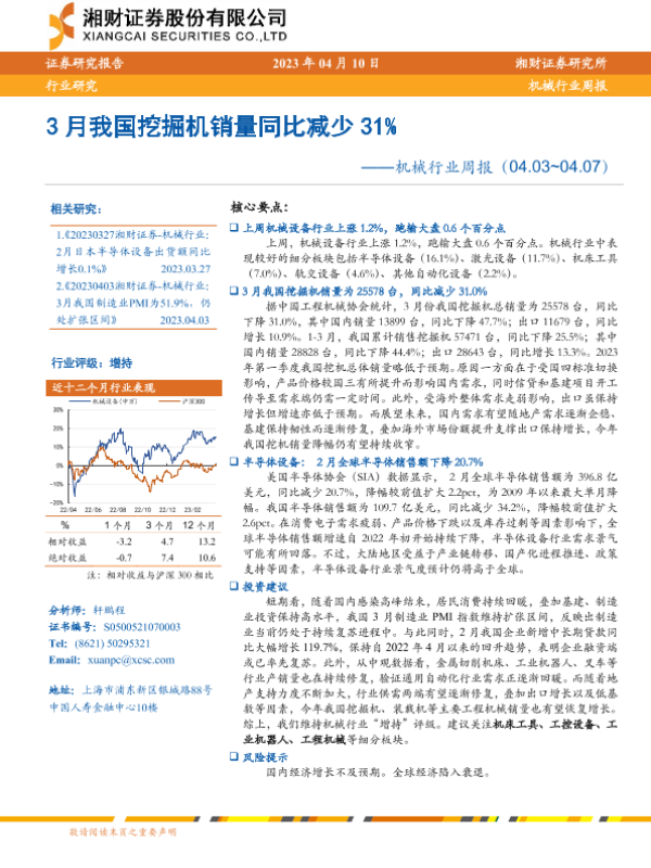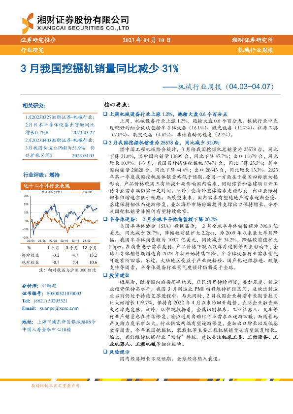 【湘财证券】【20230410】20230410-湘财证券-机械行业周报:3月我国挖掘机销量同比减少31%-14页