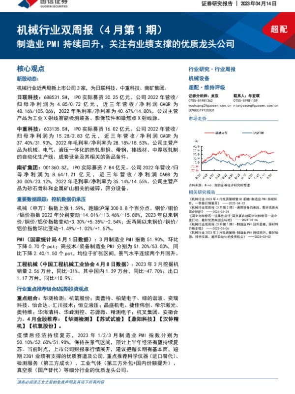 【国信证券】【20230414】20230414-国信证券-机械行业双周报(4月第1期):制造业PMI持续回升,关注有业绩支撑的优质龙头公司-22页