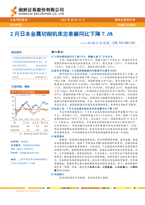 【湘财证券】【20230417】2月日本金属切削机床定单额同比下降7.6%-15页