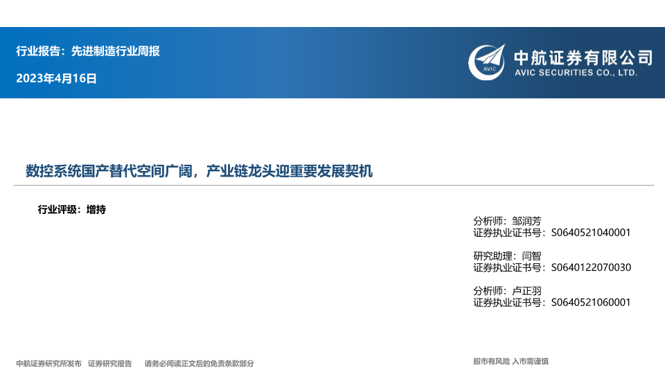 【中航证券】【20230416】20230416-中航证券-先进制造行业周报:数控系统国产替代空间广阔,产业链龙头迎重要发展契机-10页