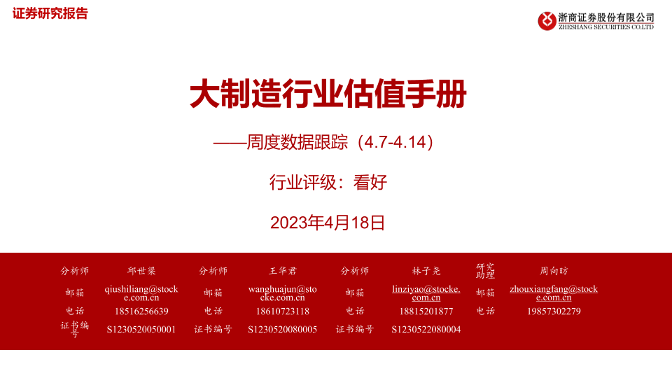 【浙商证券】【20230418】20230418-浙商证券-大制造行业估值手册:周度数据跟踪-39页