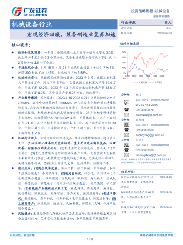 【广发证券】【20230423】20230423-广发证券-机械设备行业投资策略周报:宏观经济回暖,装备制造业复苏加速-27页