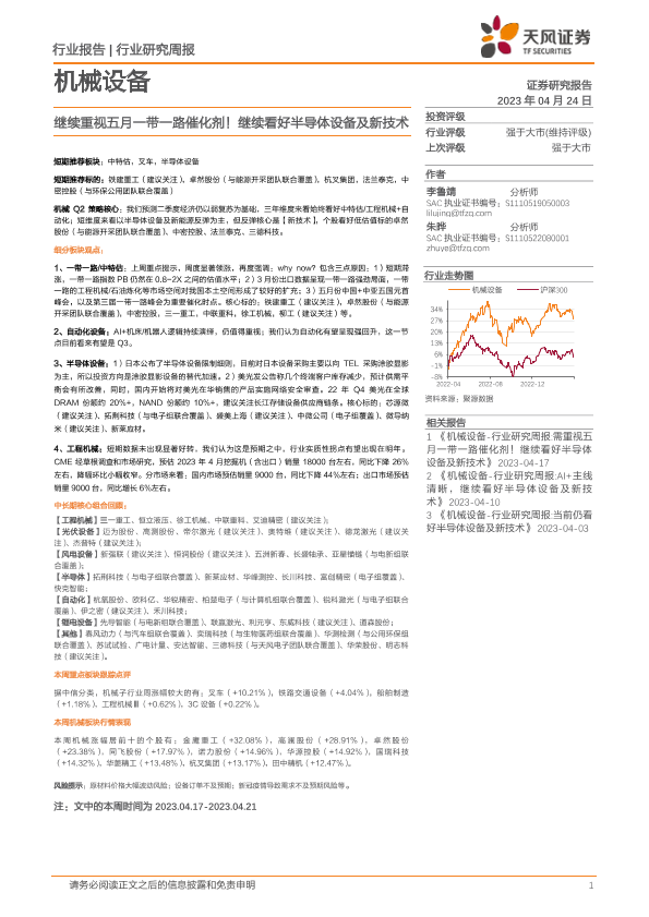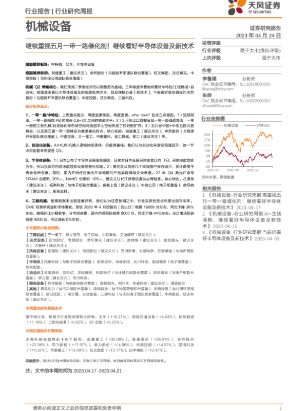 【天风证券】【20230424】20230424-天风证券-机械设备行业研究周报:继续重视五月一带一路催化剂!继续看好半导体设备及新技术-13页