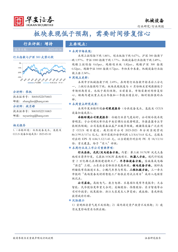 【华安证券】【20230514】20230514-华安证券-机械设备行业周报:板块表现低于预期,需要时间修复信心-12页