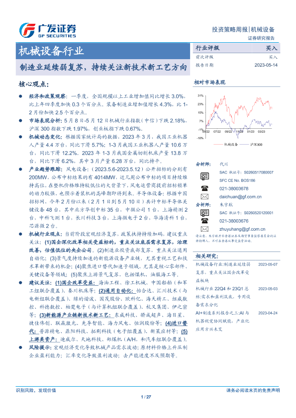 【广发证券】【20230514】20230514-广发证券-机械设备行业投资策略周报:制造业延续弱复苏,持续关注新技术新工艺方向-27页