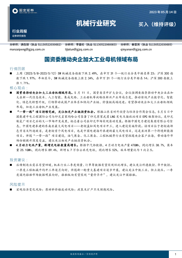 【国金证券】【20230514】20230514-国金证券-机械行业研究:国资委推动央企加大工业母机领域布局-17页