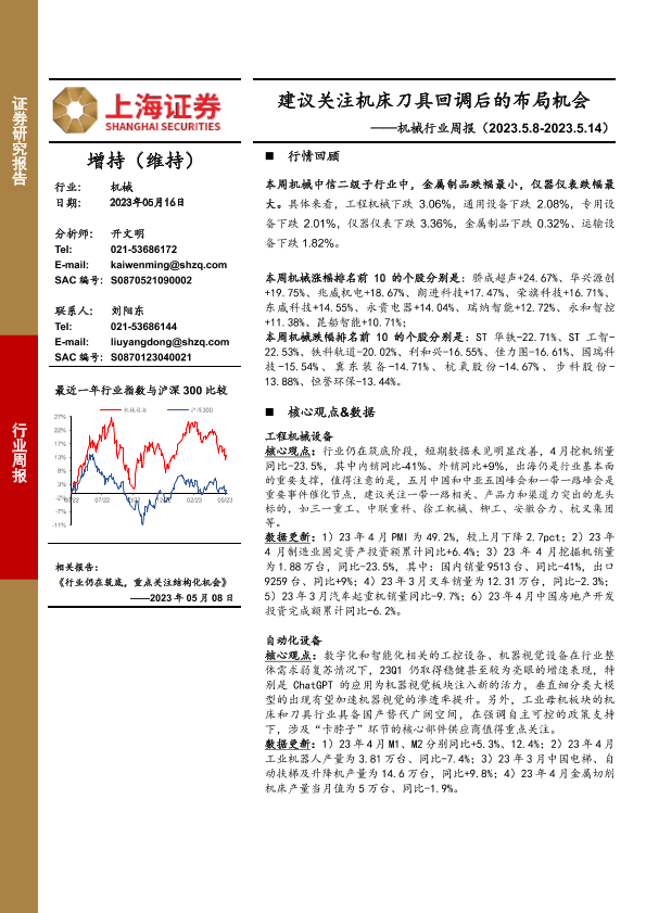 【上海证券】【20230516】20230516-上海证券-机械行业周报:建议关注机床刀具回调后的布局机会-13页
