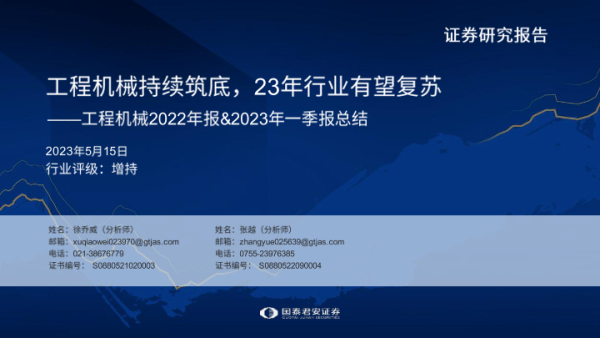 【国泰君安证券】【20230515】工程机械2022年报&2023年一季报总结:工程机械持续筑底,23年行业有望复苏-41页
