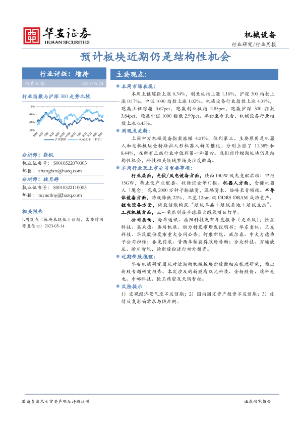 【华安证券】【20230524】20230524-华安证券-机械设备行业周报:预计板块近期仍是结构性机会-42页