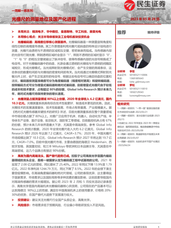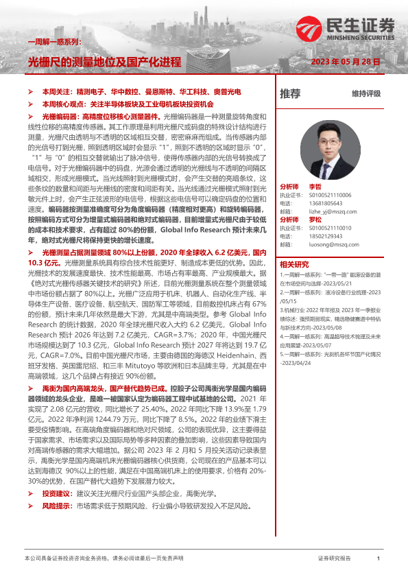 【民生证券】【20230528】机械一周解一惑系列:光栅尺的测量地位及国产化进程-15页