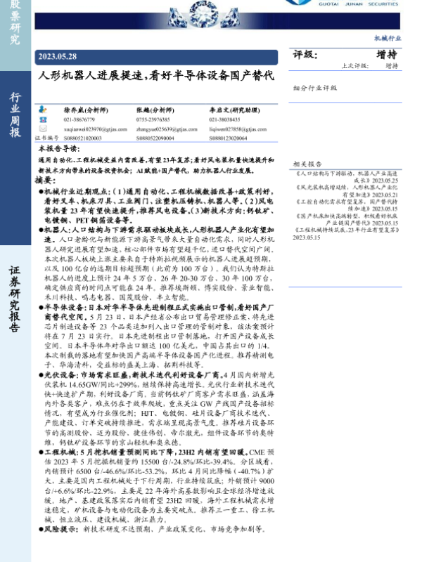 【国泰君安证券】【20230528】20230528-国泰君安-机械行业:人形机器人进展提速,看好半导体设备国产替代-35页