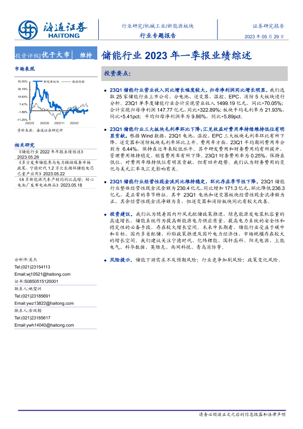 【海通证券】【20230529】储能行业2023年一季报业绩综述-17页