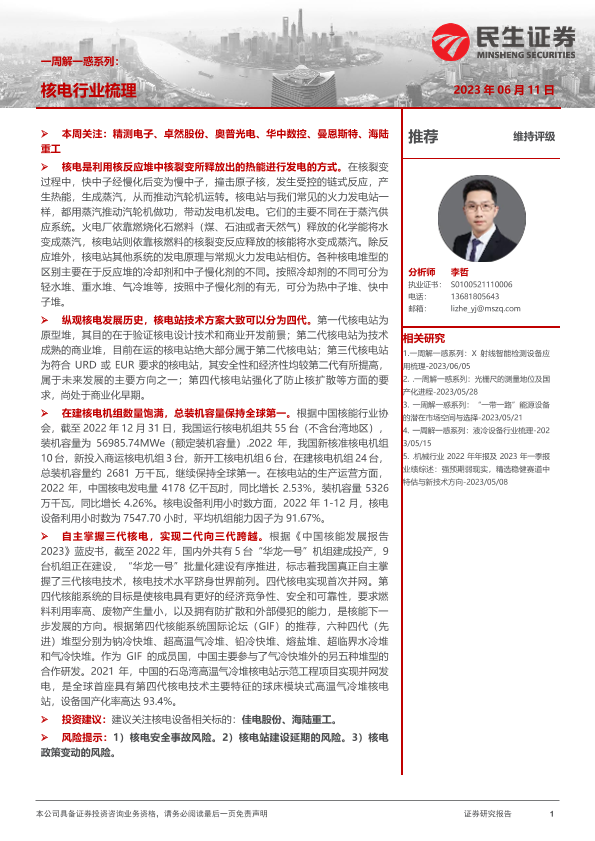 【民生证券】【20230611】机械一周解一惑系列:核电行业梳理-19页