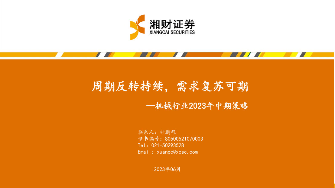 【湘财证券】【202306】机械行业2023年中期策略:周期反转持续,需求复苏可期-44页