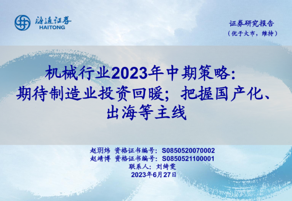 【海通证券】【20230627】机械行业2023年中期策略:期待制造业投资回暖;把握国产化、出海等主线-27页