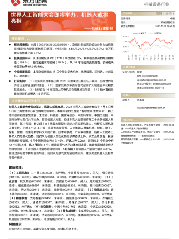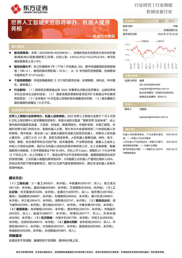 【东方证券】【20230702】20230702-东方证券-机械行业周报:世界人工智能大会即将举办,机器人或将亮相-25页