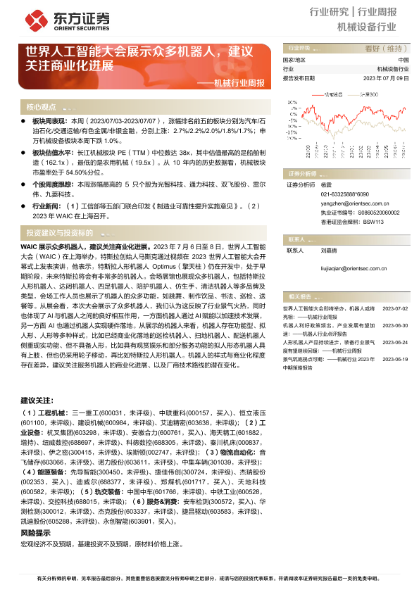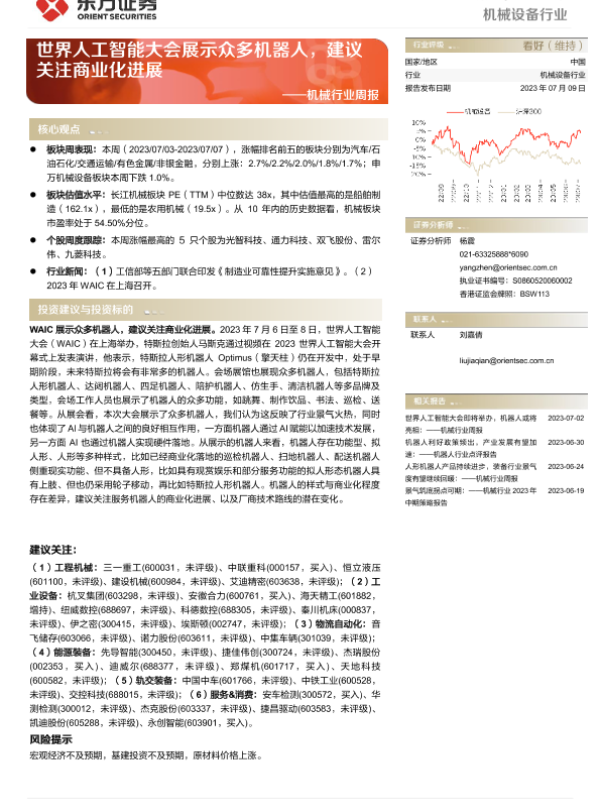 【东方证券】【20230709】20230709-东方证券-机械行业周报:世界人工智能大会展示众多机器人,建议关注商业化进展-25页