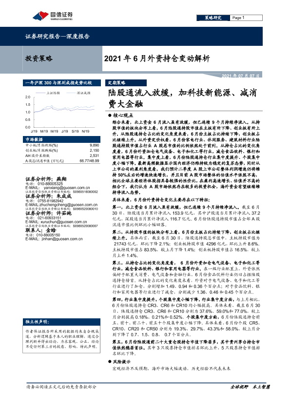 【国信证券】【20210707】2021年6月外资持仓变动解析:陆股通流入放缓,加科技新能源、减消费大金融-21页