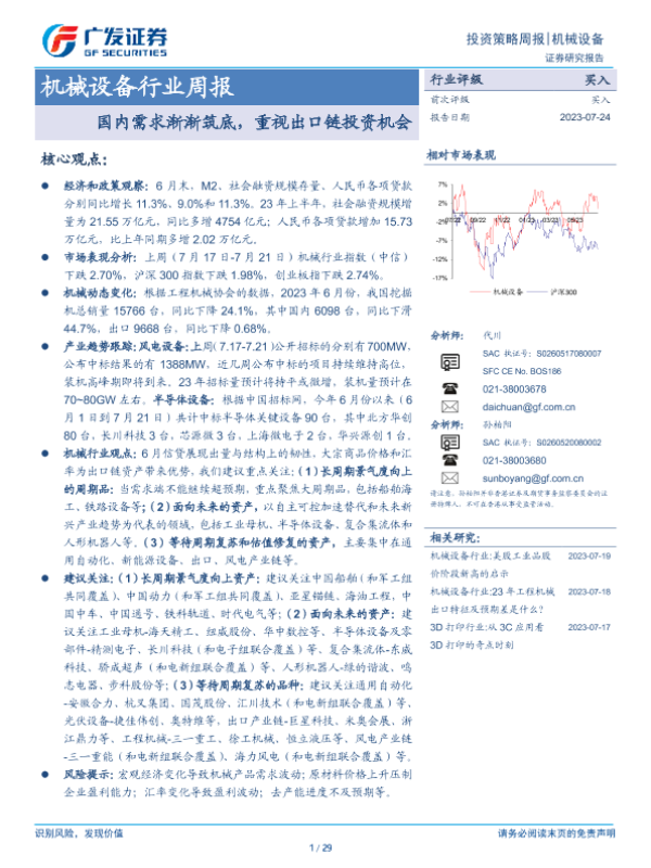 【广发证券】【20230724】20230724-广发证券-机械设备行业周报:国内需求渐渐筑底,重视出口链投资机会-29页