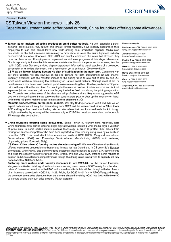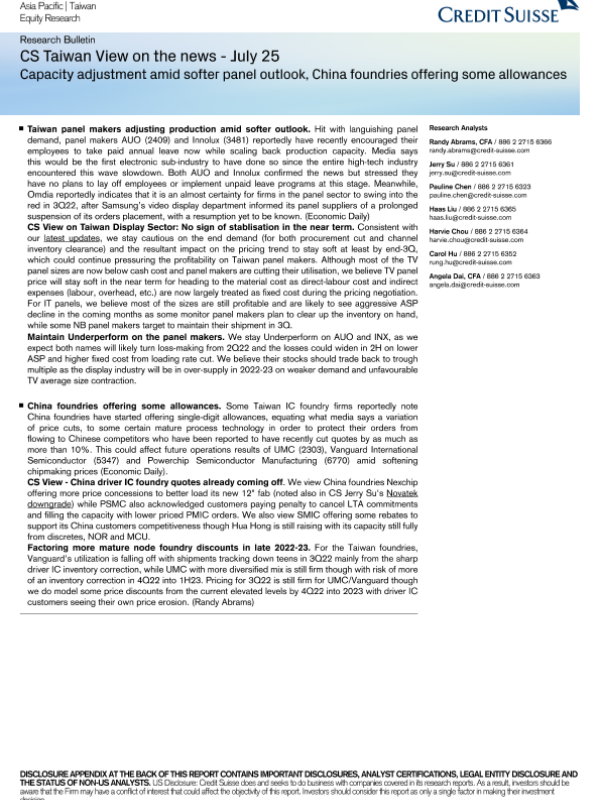 【Credit Suisse】【20220725】CS-Taiwan View on the news - July 25-6页
