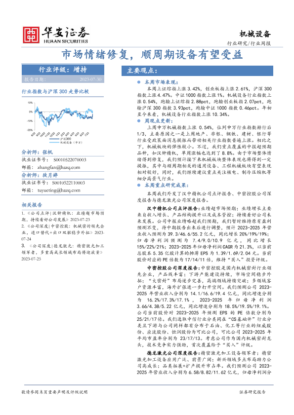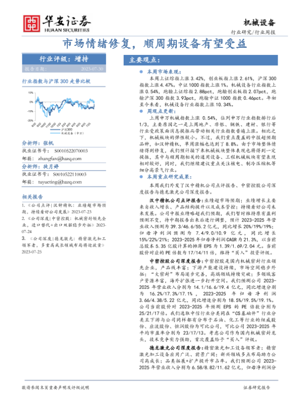 【华安证券】【20230730】20230730-华安证券-机械设备行业周报:市场情绪修复,顺周期设备有望受益-16页
