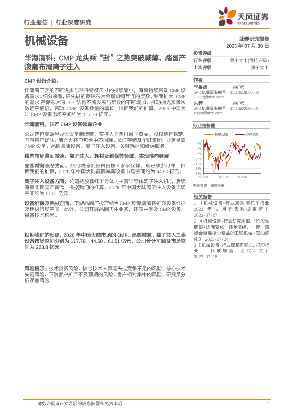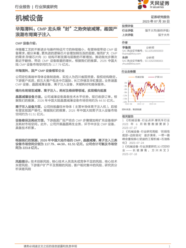 【天风证券】【20230730】华海清科:CMP龙头乘“封”之势突破减薄,踏国产浪潮布局离子注入-29页