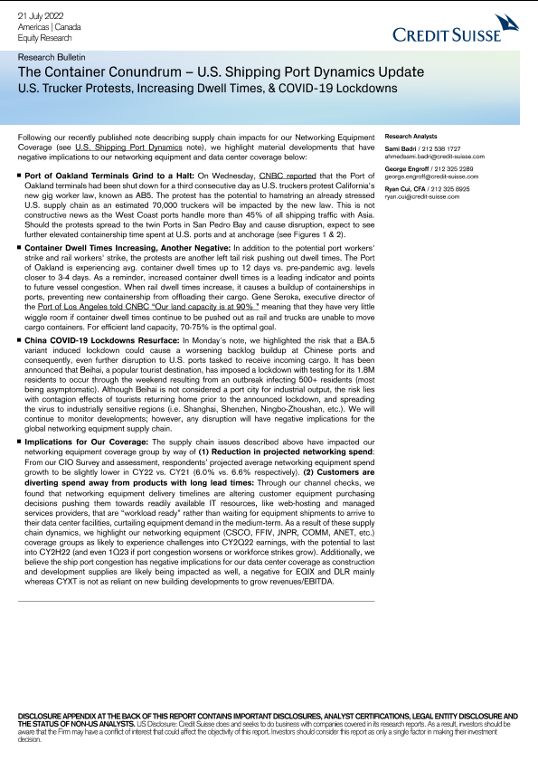 【Credit Suisse】【20220721】CS-The Container Conundrum – U.S. Shipping Port Dynamics Update-8页