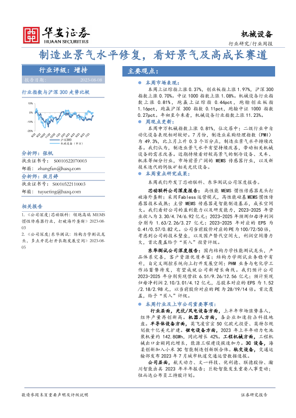 【华安证券】【20230808】20230808-华安证券-机械设备行业周报:制造业景气水平修复,看好景气及高成长赛道-28页