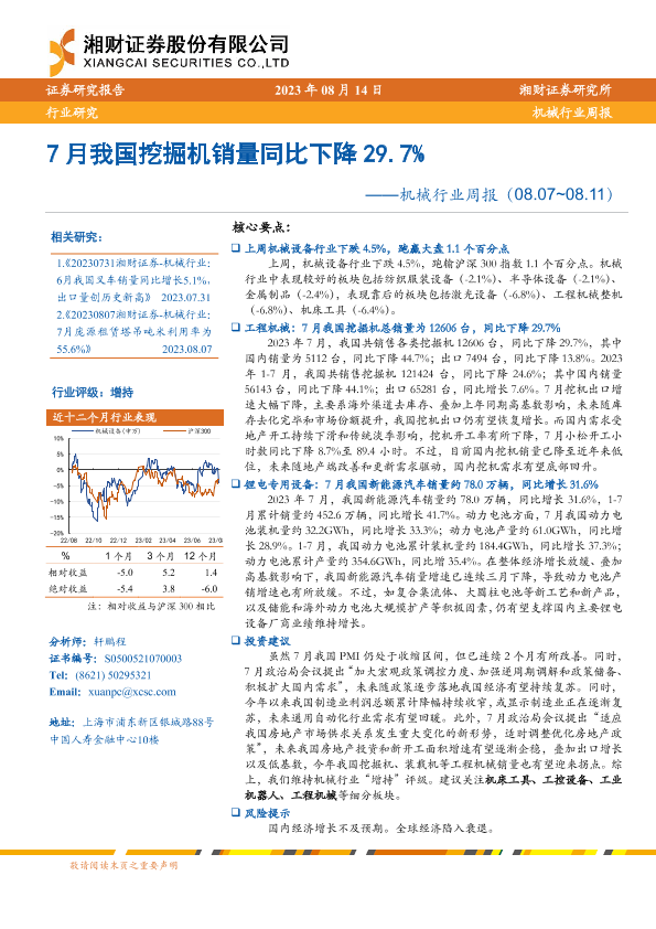 【湘财证券】【20230814】20230814-湘财证券-机械行业周报:7月我国挖掘机销量同比下降29.7%-13页
