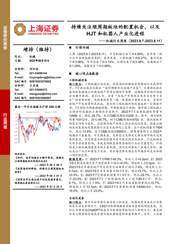 【上海证券】【20230815】20230815-上海证券-机械行业周报:持续关注顺周期板块的配置机会,以及HJT和机器人产业化进程-21页