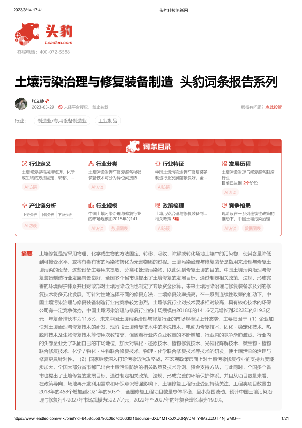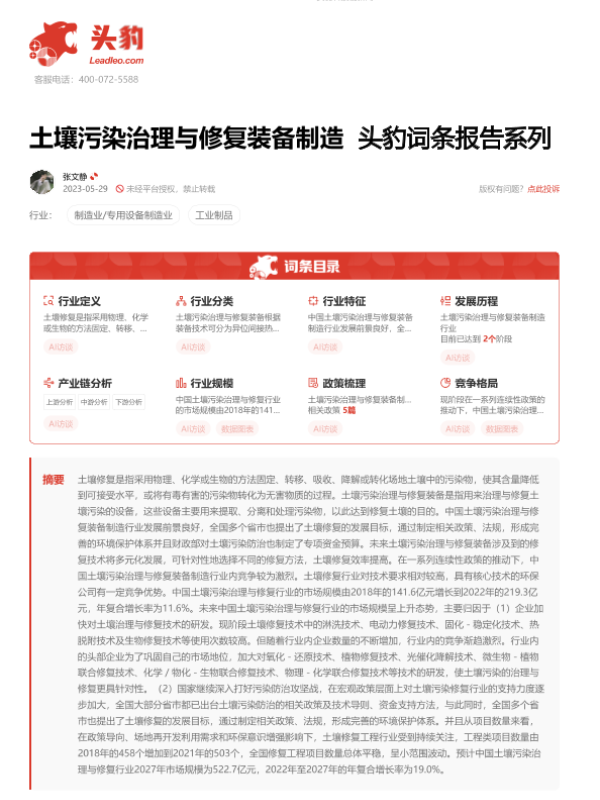 【头豹研究院】【20230814】土壤污染治理与修复装备制造 头豹词条报告系列-21页