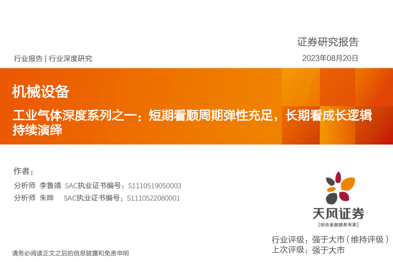 【天风证券】【20230820】20230820-天风证券-机械设备行业深度研究:工业气体深度系列之一:短期看顺周期弹性充足,长期看成长逻辑持续演绎-50页
