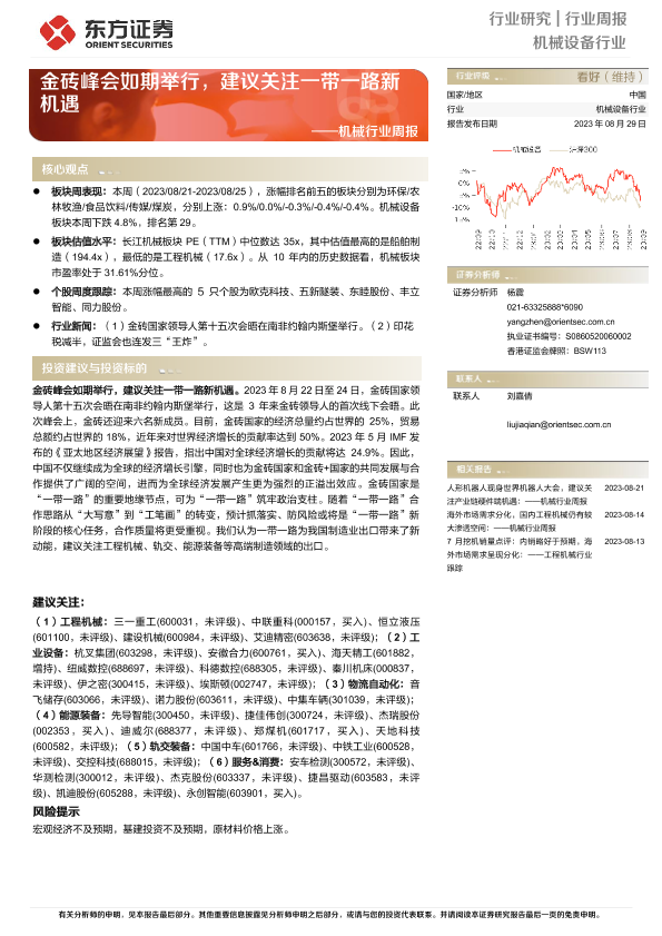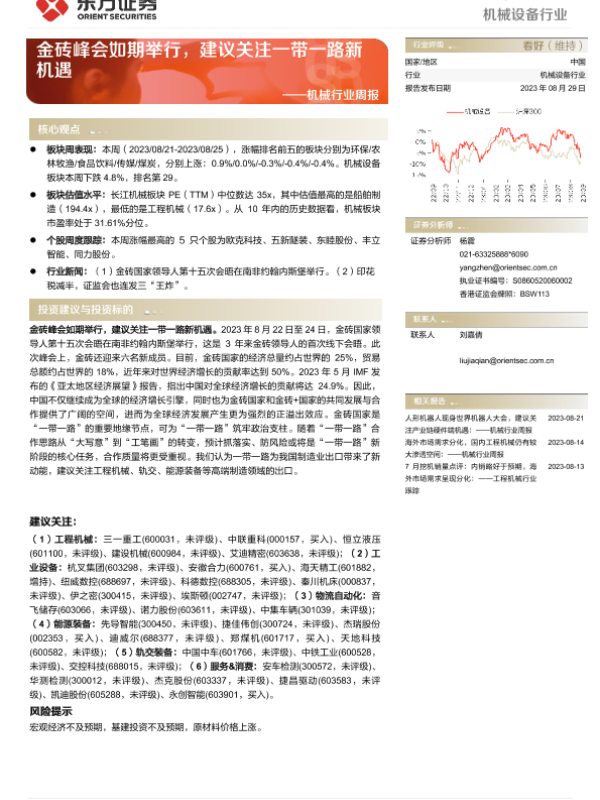 【东方证券】【20230829】20230829-东方证券-机械行业周报:金砖峰会如期举行,建议关注一带一路新机遇-25页