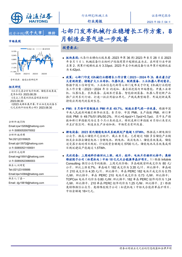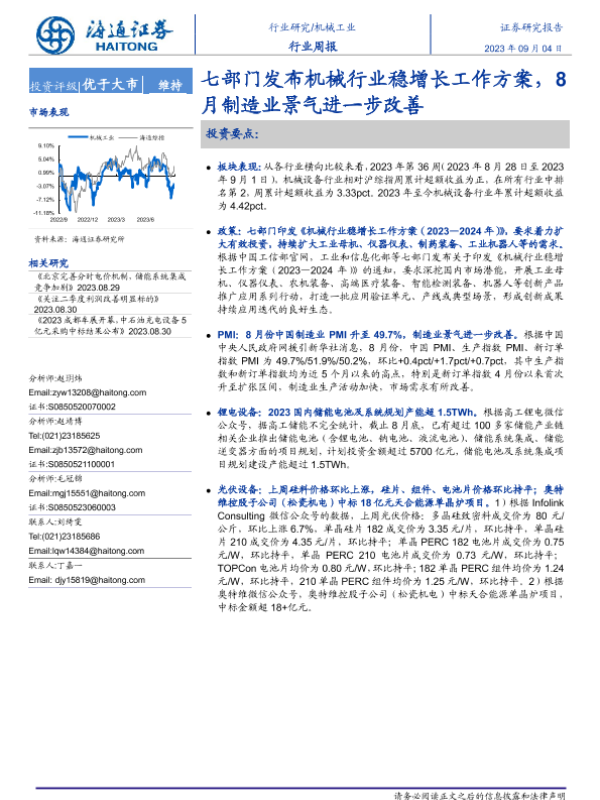 【海通证券】【20230904】20230904-海通证券-机械工业行业周报:七部门发布机械行业稳增长工作方案,8月制造业景气进一步改善-10页