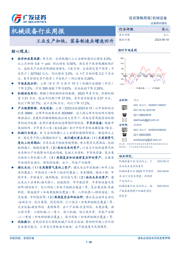 【广发证券】【20230918】20230918-广发证券-机械设备行业周报:工业生产加快,装备制造业增速回升-28页