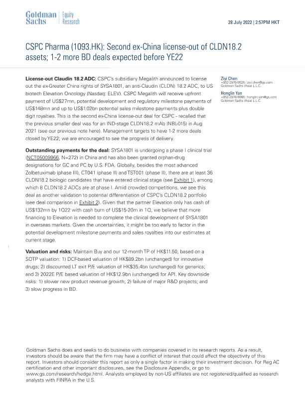 【Goldman Sachs】【20220728】na license-out of CLDN18.2 assets; 1-2 more BD deals expected before YE22-7页