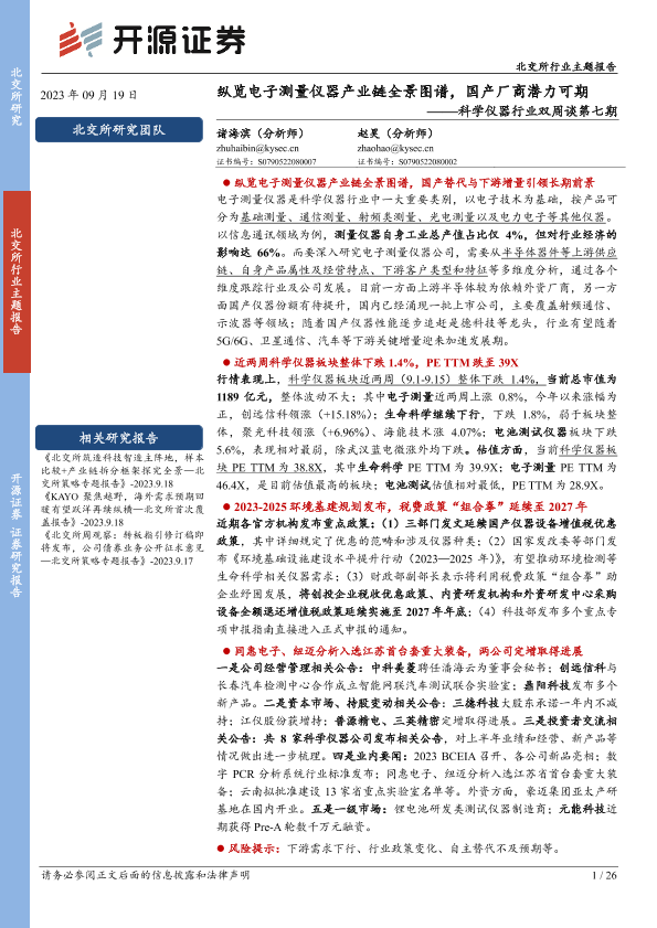 【开源证券】【20230919】纵览电子测量仪器产业链全景图谱,国产厂商潜力可期-26页