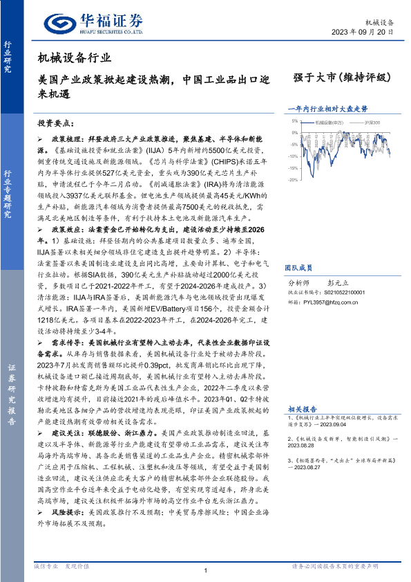 【华福证券】【20230920】机械设备行业:美国产业政策掀起建设热潮,中国工业品出口迎来机遇-20页