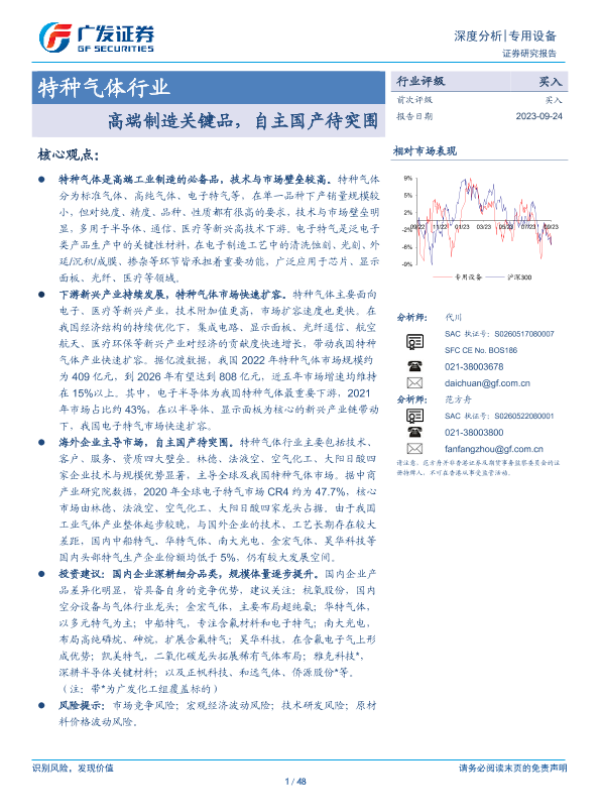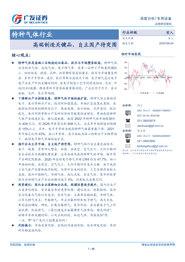 【广发证券】【20230924】20230924-广发证券-特种气体行业深度分析:高端制造关键品,自主国产待突围-48页