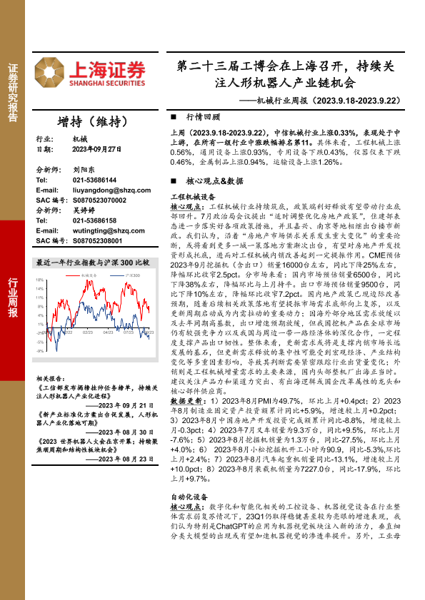 【上海证券】【20230927】20230927-上海证券-机械行业周报:第二十三届工博会在上海召开,持续关注人形机器人产业链机会-25页
