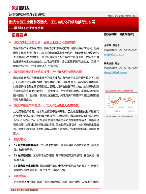 【源达信息】【20230926】激光宏加工应用前景远大,工业自动化升级助推行业发展-25页