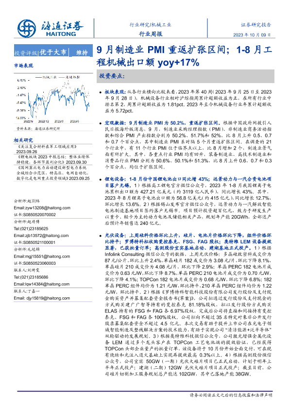 【海通证券】【20231009】20231009-海通证券-机械工业行业周报:9月制造业PMI重返扩张区间;1-8月工程机械出口额yoy+17%-10页